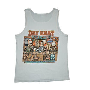 💀 "Dry Heat Saloon" – Skeleton bar scene with “Give me what the guy on the floor is having!” print.