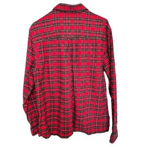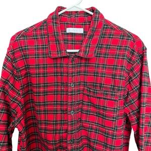 Lake Plaid Flannel Pajama top only Men’s size Large Long Sleeve Button-Down Soft & Warm Red Dark Green