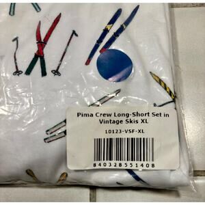 Lake Pajamas Pima Crew Long Short Set Snow Skis "Vintage Skis" Pattern XL New NWT
