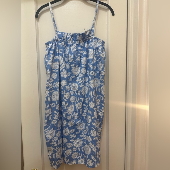 This spaghetti-strap style features a ruffle trim on a fully elasticated top and hits above the knee.