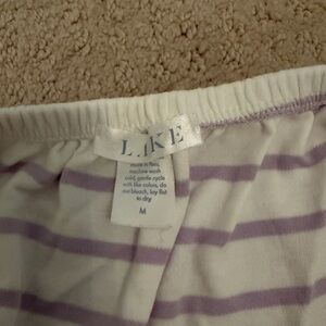 White and purple striped. Adjustable straps on tank. Perfect condition, only worn a few times. Size medium top and bottom.