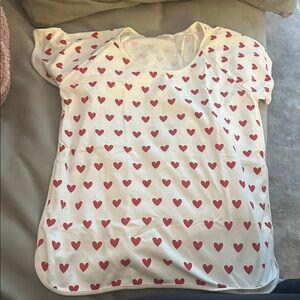 Adorable Lake pajama set featuring a charming heart pattern. Tee shirt top, ankle length pant included.