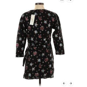 Lake Studio Floral Jacquard Wrap Mini Dress Black NWT 3/4 Sleeve Size 8 Ukraine