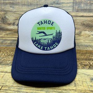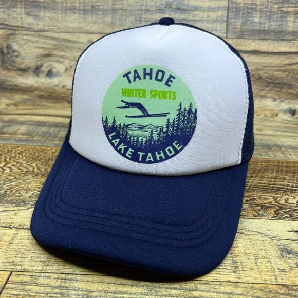 Lake Tahoe Mens Trucker Hat Navy Snapback Vintage Winter Sports Logo Nevada Cap