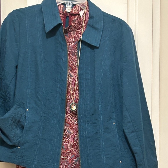 Stylish dark lake teal transitional jacket - From one season to another this cloth jacket offers versatile style and a million options with what you have in your closet. Excellent Condition !