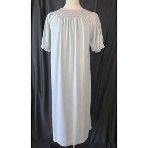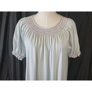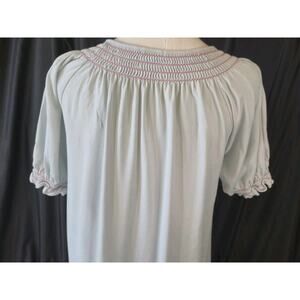 Lake Womens Light Blue Smocked Neck 100% Pima Cotton Night Gown Medium