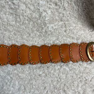 Lake shore Drive leather tan patchwork Belt with brass buckle & studs accents.pre owned in excellent used condition see all pictures any questions please message.