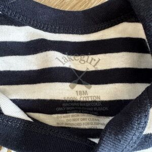 Charming bodysuit with nautical stripes. Features a gold anchor and 'lakebaby' text. Ideal for little adventurers.