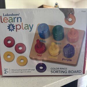 The Lakeshore Educational Color Rings Sorting Board is a wooden toy designed for kids aged 2 and up. With a multicolor theme, this sorting board helps young children develop their cognitive skills by learning to categorize colors. The Lakeshore brand ensures high quality and durability, making it a great educational tool for little ones to engage with shapes and colors. Perfect for ages 2-5, this sealed and new sorting board is a fantastic addition to any child's toy collection.