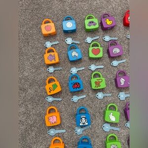 Here’s the key to building alphabet skills! Our learning locks help kids recognize uppercase and lowercase letters and explore letter sounds. Kids simply choose a key and match it to the letter or to the picture on the lock—when they make a successful match, the key will turn and the lock will open for instant reinforcement! You get 26 locks and 26 keys; locks measure 3 1/4" tall.