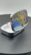 Has two separate compartments for items. Silver tone. Rectangle shaped.