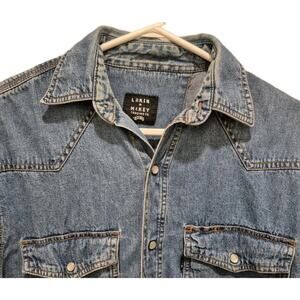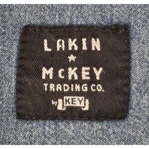 Lakin McKey Denim Western Shirt Pearl Snaps Men Medium Cotton Long Sleeves