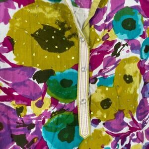 Lakshita Women's Colorful Boho Floral Front Tunic Top - Size Small - Embroidered