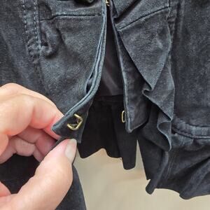 Lal Live a Little 100% Suede Leather Ruffle Front Blazer Jacket Black SZ Small