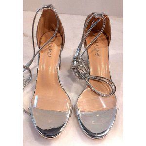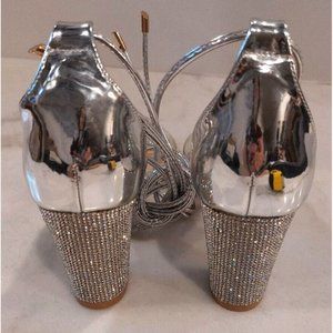 Lala Ikai Silver Strappy Open Toe Rhinestone Block Heels Party Shoe Sz 7.5 NIB