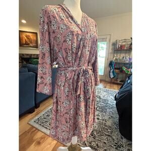 Lala Sleepwear Robe Pink Floral Tie Belt Womens 2X