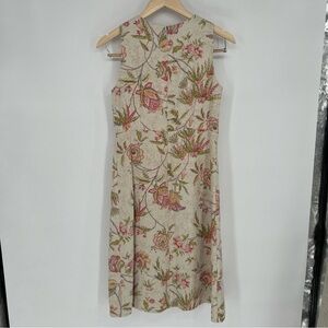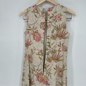 Lalage Beaumont Linen Botanical Floral Print Shift Dress Professional