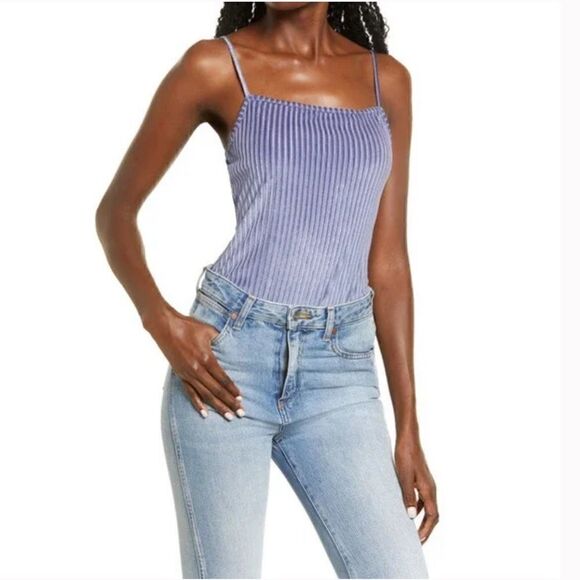 Sleeveless, ribbed bodysuit made from a burnout velvet that lends a polished, tucked-in look to anything you wear.