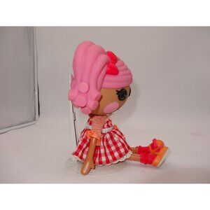 This Lalaloopsy doll, featuring vibrant pink hair and a cheerful red gingham dress, comes with a charming pink bed adorned with playful details. Designed for collectors and children alike, this set offers a delightful combination of fun and whimsy, showcasing quality craftsmanship and attention to detail.
