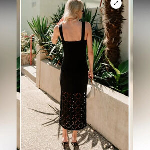 Lalavon BLACK KNIT CUT-OUT TRIM MIDI DRESS