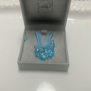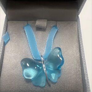 Lalique Crystal Blue Butterfly Pendant with Blue Ribbon Necklace 34