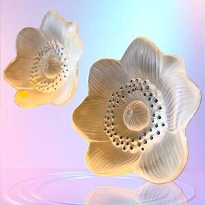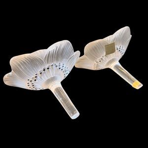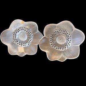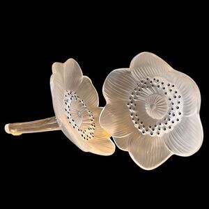 Lalique France Set Of Two Vintage Anemone Flower Sculpture, Paperweights