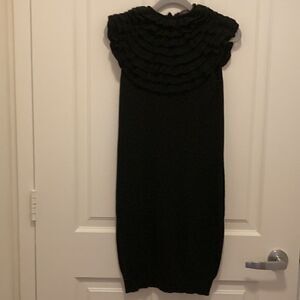 Laltramoda Black Sweater Dress with Ruffle Bib & Short Flutter Sleeve. Size S.