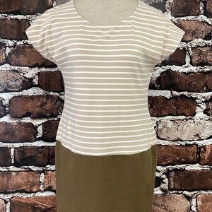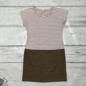 Lalu T-Shirt Dress Tan and white stripes Brown pencil skirt Stretchy knit Size medium Very good condition
