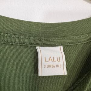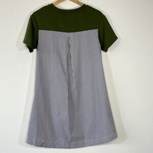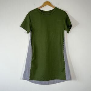 Lalu Tshirt Dress Womens Small Green Striped Swing Summer Casual Pockets Classic