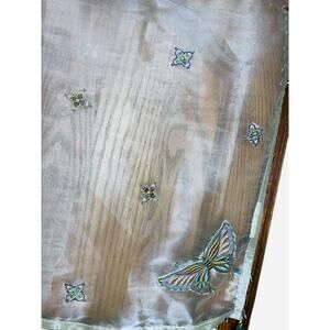 Lam Lee Sage Green Beaded and Embroidered Butterfly and Beaded Tassels 42 x 42”