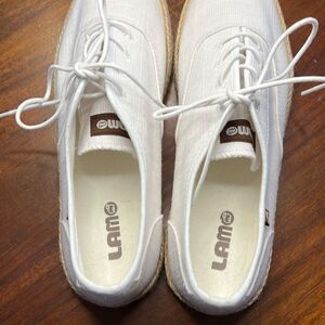 Lam White Lace Up Linen Espadrilles Womens US 11W