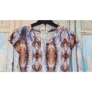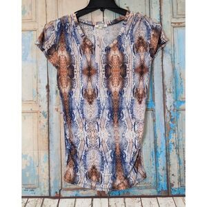 Lamade Women's Size XS Multicolor Snake Print Short Sleeve Round Neck Blouse Top