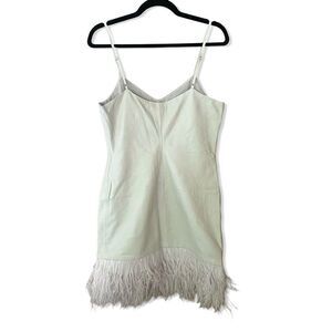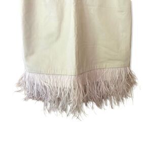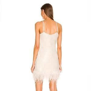 Lamarque Abella Dress Lambskin Leather Feather trim bone white mini Revolve M