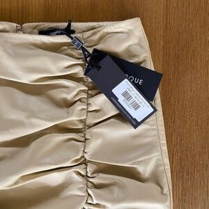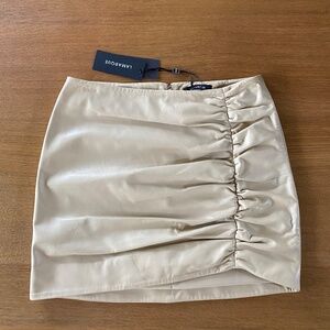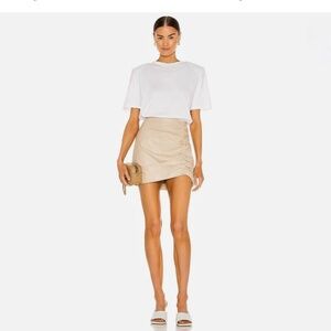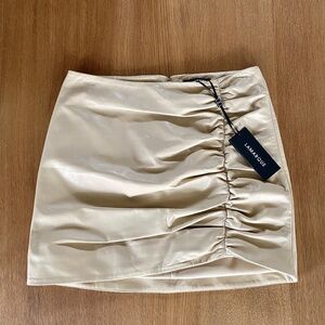 Lamarque Aricia beige ruched super soft lambskin leather mini skirt. New with tags US4.