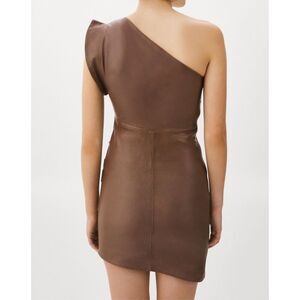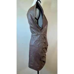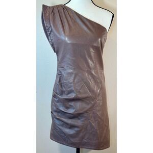 Lamarque Corey 100% Soft Leather Draped One Shoulder Lined Mini Dress Small