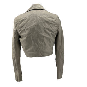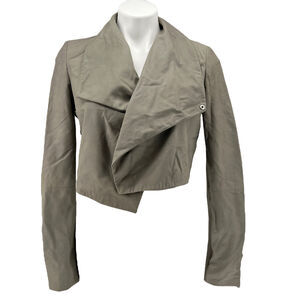 Lamarque Leather Crop Topper Jacket S NEW Claudia Biker Taupe Drape Shawl Collar