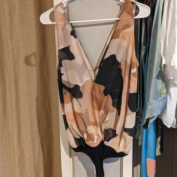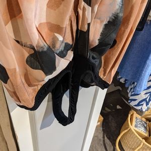 A unique one-piece with beautiful color blocking