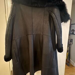 Chic black jacket with 100% shearling lining and trim. Very warm and fashionable!