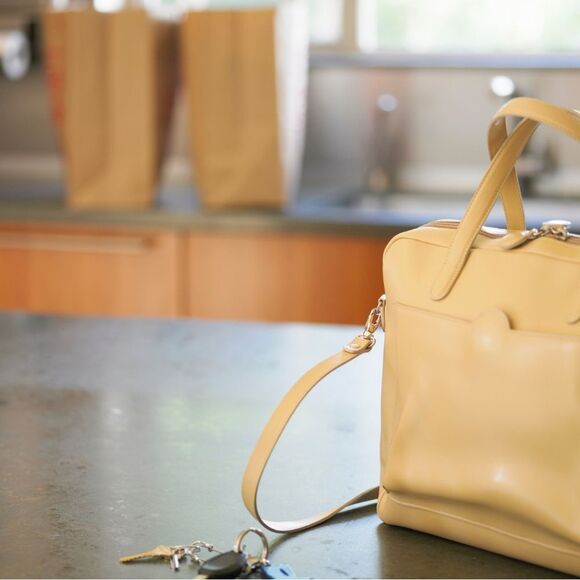 No strap. No nonsense. Just a 5” dual handle drop and room for the life of a woman who has places to be—and usually already is.