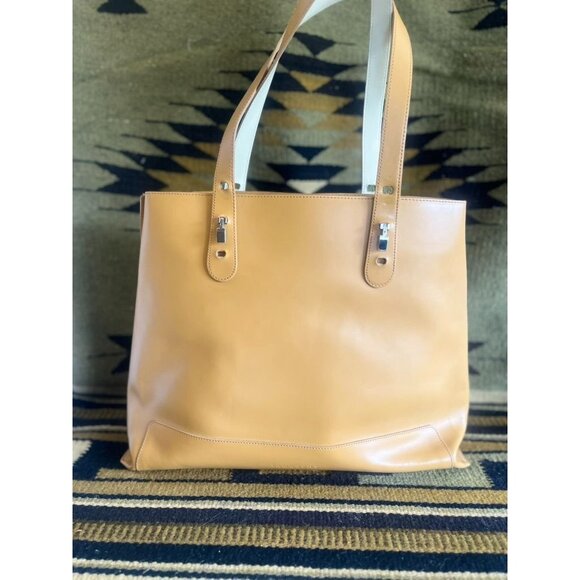 Lamarthe Paris Tan Leather Tote Bag With Silver-Tone Hardware Elegant Italy