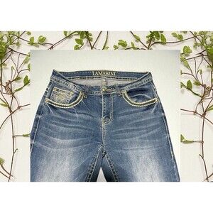 Lamasini Jeans Women’s Size 9 / 28x31 Bootcut Blue Denim Crown Embroidered Bling