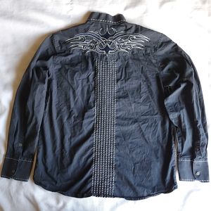 Lamasini Premium Dark Navy Blue Western Rodeo Tribal Print XL Button-down Shirt Long Sleeve
