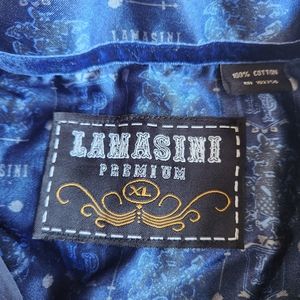 Lamasini Premium Dark Navy Blue Western Rodeo Tribal Print XL Button-down Shirt