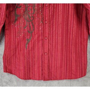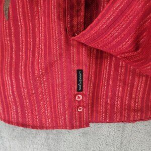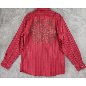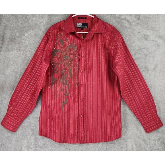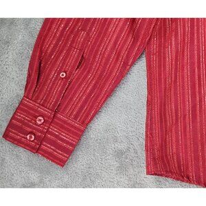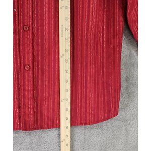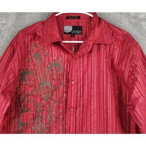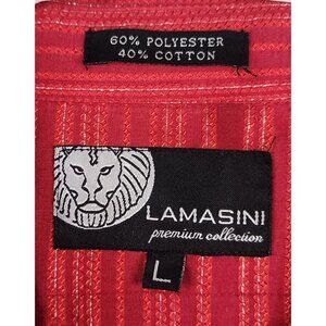 Lamasini Shirt Mens Large Red Striped Metallic Retro Button Up Long Sleeve