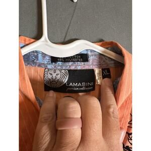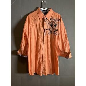 Lamasini Shirt Mens XL Orange Embroidered Sword Axe Studded Western Button Up