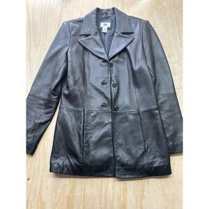 Lamb Skin Leather Jacket Black Soft BP Women’s Large Vintage Button Up Fitted L