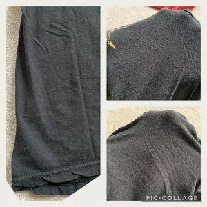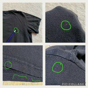 A few tiny spots on shirt: On one shoulder, on back of shirt near one short sleeve, and on back bottom hem (Pic #6).