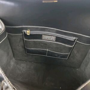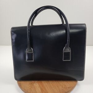 Lamberston Truex Boxcar Black Leather Handbag Bag Purse Italy