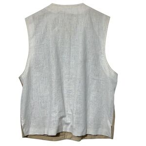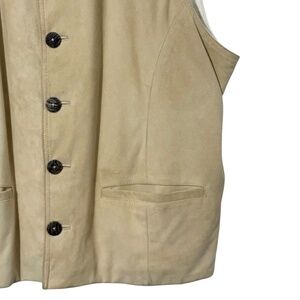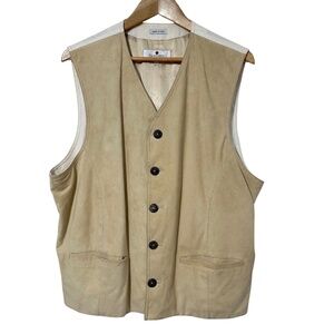 Lamberti Mens Suede Leather Vest with Linen Back Size L Button Up Summer Casual
