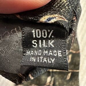 100% silk necktie by Lamberti, made in Italy. shades of gray, brown, white, and gold.